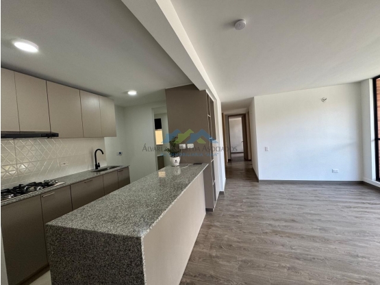 ¡EXCELENTE OPORTUNIDAD!  Hermoso Apartamento para estrenar, muy iluminado, de 82.11 metros construidos.más área de terraza y zona verde alrededor del apartamento (zona común de uso exclusivo), sólo tienen esta área los apartamentos del primer piso. Tres habitaciones, la principal con baño privado y walking closet, baño auxiliar para las otras dos habitaciones, cocina integral abierta, zona de lavandería independiente, sala-comedor con salida a terraza de 4.72 M2 y zona verde adicional de 3.51 M2, modernos acabados, dos parqueaderos propios. En conjunto Club House, Sauna-Turco, piscinas, gimnasio y canchas múltiples, parque infantil, gimnasio al aire libre, salones comunales. Excelentes vías de acceso, ubicado sobre la milla de oro, sector residencial de gran valorización y comercialización, cerca a Universidades, centros comerciales, restaurantes y almacenes de cadena y a transporte público. NUEVO para entrega en Agosto 2024. El valor del arriendo incluye la cuota de administración.